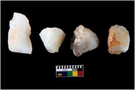 | Description / विवरण | Four worked utilised cores. Flakes removed from few sides. Most of them are uneven and few are tapering at one end. |