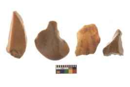 | Description / विवरण | There are n 4 flakes tool; there are large flakes with sides trimmed, Marks of secondary flaking are present on the both the faces.The dorsal is relatively flat. |