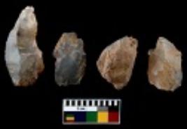 | Description / विवरण | There are n 4 utilized flake cores. There are multi directional irregular scar pattern on them. One is tapering at one end and three have blunted edges. |