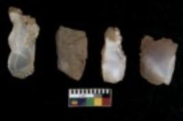 | Description / विवरण | There are n 4 utilized flake cores. There are multi directional irregular scar pattern on them. One is tapering at one end and three have blunted edges. |