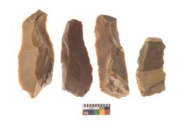 | Description / विवरण | There are n 4 flakes tool; there are flakes tool with prominent flaking marks. It made up of a large flakes with sides trimmed. It is rectangular in shaped. |