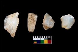 | Description / विवरण | Four worked utilised cores. Flakes removed from few sides. Most of them are uneven and few are tapering at one end. |