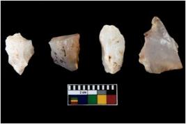 | Description / विवरण | Four worked utilised cores. Flakes removed from few sides. Most of them are uneven and few are tapering at one end. |