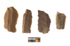 | Description / विवरण | There are n 4 flakes tool; there are large flakes with sides trimmed, Marks of secondary flaking are present on the both the faces.The dorsal is relatively flat. |