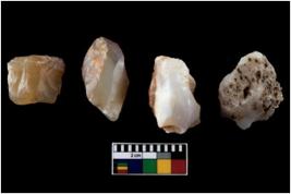| Description / विवरण | Four worked utilised cores. Flakes removed from few sides. Most of them are uneven and few are tapering at one end. |