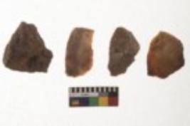 | Description / विवरण | There are n 4 utilized flake cores. There are multi directional irregular scar pattern on them. All have flat base. Two have blunted edges and two have round edges. |