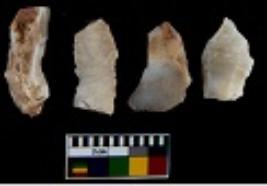 | Description / विवरण | There are n 4 utilized flake cores. There are multi directional irregular scar pattern on them. Three are tapering at one end and one has sharp edge. |