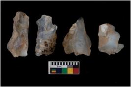 | Description / विवरण | There are n 4 of utilized worked cores. They have sharp edges and multidirectional scar pattern. Two are elongated in shape. |