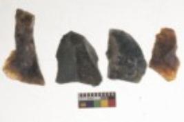 | Description / विवरण | There are n 4 utilized flake cores. There are multi directional irregular scar pattern on them. Two are tapering at one end and two have blunted edges. |