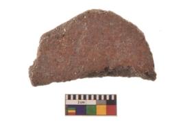 | Description / विवरण | A partially broken specimen of red ware disc with rounded and smooth edge and flat surface. |