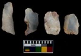 | Description / विवरण | There are n 4 utilized flake cores. There are multi directional irregular scar pattern on them. All of them are tapering at one end. |