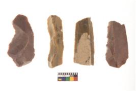 | Description / विवरण | There are n 4 flakes tool; there are flakes tool with prominent flaking marks. It made up of a large flakes with sides trimmed. It is rectangular in shaped. |