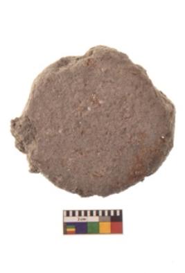 | Description / विवरण | Specimen of ground disc hopscotch made from a red ware. It has jagged edges with sign of chipping. It is rounded in shape. |