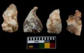| Description / विवरण | There are n 4 utilized flake cores. Out of them one is made up of Chert and three are made up of Chalcedony. There are multi directional irregular scar pattern on them. Two are tapering at one end and two have sharp edges. |