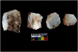 | Description / विवरण | Four worked utilised cores. Flakes removed from few sides. Most of them are uneven and few are tapering at one end. |