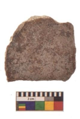 | Description / विवरण | Specimen of ground disc hopscotch made from a red ware. It has jagged edges with sign of chipping. It is rounded in shape. |