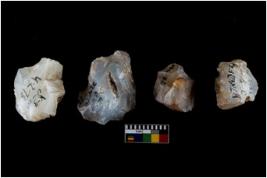 | Description / विवरण | Four worked utilised cores. Flakes removed from few sides. Most of them are uneven and few are tapering at one end. |