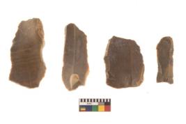 | Description / विवरण | There are n 4 flakes tool; there are large flakes with sides trimmed, Marks of secondary flaking are present on the both the faces.The dorsal is relatively flat. |