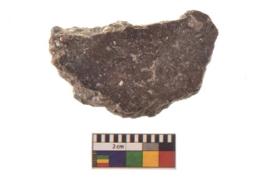 | Description / विवरण | Specimen of ground disc hopscotch made from a red ware. It has jagged edges with sign of chipping. It is rounded in shape. |