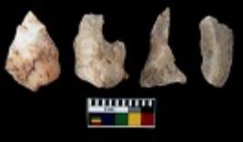 | Description / विवरण | There are n 4 utilized flake cores. There are multi directional irregular scar pattern on them. Two are tapering at one end and two have sharp edges. |