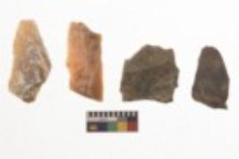 | Description / विवरण | There are n 4 utilized flake cores. There are multi directional irregular scar pattern on them. Two are tapering at one end and two have blunted edges. |