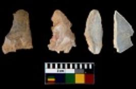 | Description / विवरण | There are n 4 utilized flake cores. There are multi directional irregular scar pattern on them. Three are tapering at one end and one has sharp edge. |