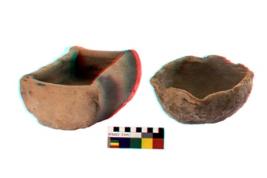 | Description / विवरण | 1 A complete specimen of terracotta votive tank, rectangular with medium high walls; it is of coarse red fabric with flat base. 2 A fragment of terracotta lamp, squarish but with rounded corners; it has medium high vertical walls with a flat but very thick base and is devoid of a channel wick. |