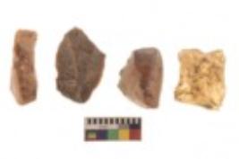| Description / विवरण | There are n 4 utilized flake cores. There are multi directional irregular scar pattern on them. Two have flat base and two have blunted edges. |