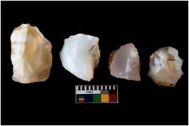 | Description / विवरण | Four worked utilised cores. Flakes removed from few sides. Most of them are uneven and few are tapering at one end. |