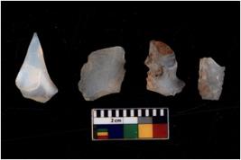 | Description / विवरण | There are n 4 Flake tool; There are multidirectional irregular scar pattern on them. few have blunt edges, Some of them are |