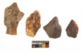 | Description / विवरण | There are n 4 utilized flake cores. There are multi directional irregular scar pattern on them. Two are tapering at one end and two have blunted edges. |