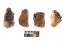 | Description / विवरण | There are n 4 utilized flake cores. Out of them three are made up of Chert and one is made up of Chalcedony. There are multi directional irregular scar pattern on them. Two have flat base and two have blunted edges. |
