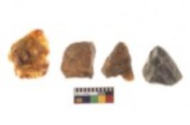 | Description / विवरण | There are n 4 utilized flake cores. Out of them three are made up of Chert and one is made up of Chalcedony. There are multi directional irregular scar pattern on them. All have flat base. Two have blunted edges and two have round edges. |