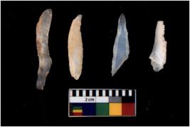 | Description / विवरण | There are n 4 Flake tool; There are multidirectional irregular scar pattern on them. few have blunt edges, Some of them are |
