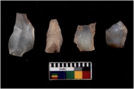 | Description / विवरण | There are n 4 Flake tool; There are multidirectional irregular scar pattern on them. few have blunt edges, Some of them are |