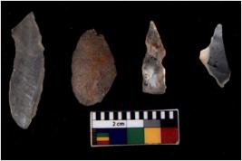 | Description / विवरण | There are n 4 flakes tool; there are large flakes with sides trimmed, Marks of secondary flaking are present on the both the faces. |