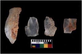| Description / विवरण | There are n 4 Flake tool; There are multidirectional irregular scar pattern on them. few have blunt edges, Some of them are |