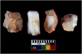 | Description / विवरण | Four worked utilised cores. Flakes removed from few sides. Most of them are uneven and few are tapering at one end. |
