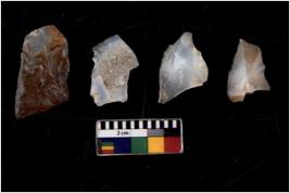 | Description / विवरण | There are n 4 Flake tool; There are multidirectional irregular scar pattern on them. few have blunt edges, Some of them are |