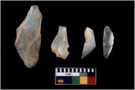 | Description / विवरण | There are n 4 flakes tool; there are flakes with sides trimmed, Marks of secondary flaking are present on the both the faces.The dorsal is relatively flat. |
