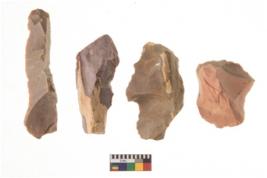 | Description / विवरण | There are n 4 flakes tool; there are large flakes with sides trimmed, Marks of secondary flaking are present on the both the faces.The dorsal is relatively flat. One is pointed functional top. |