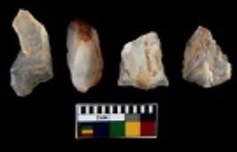 | Description / विवरण | There are n 4 utilized flake cores. There are multi directional irregular scar pattern on them. One is tapering at one end and three have blunted edges. |