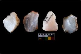 | Description / विवरण | Four worked utilised cores. Flakes removed from few sides. Most of them are uneven and few are tapering at one end. |