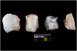 | Description / विवरण | Four worked utilised cores. Flakes removed from few sides. Most of them are uneven and few are tapering at one end. |