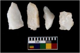 | Description / विवरण | There are n 4 utilized flake cores. Three are tapering at one end and one has blunted edge. |