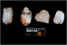 | Description / विवरण | Four worked utilised cores. Flakes removed from few sides. Most of them are uneven and few are tapering at one end. |