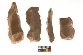 | Description / विवरण | There are n 4 flakes tool; there are large flakes with sides trimmed, Marks of secondary flaking are present on the both the faces.The dorsal is relatively flat. Two are pointed functional top. |