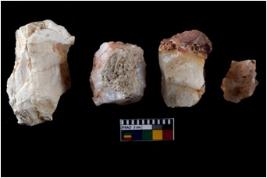 | Description / विवरण | Four worked utilised cores. Flakes removed from few sides. Most of them are uneven and few are tapering at one end. |