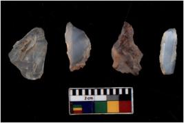 | Description / विवरण | There are n 4 flakes tool; there are large flakes with sides trimmed, Marks of secondary flaking are present on the both the faces. |