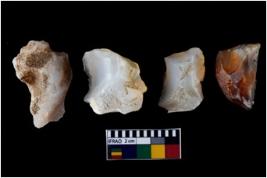| Description / विवरण | Four worked utilised cores. Flakes removed from few sides. Most of them are uneven and few are tapering at one end. |